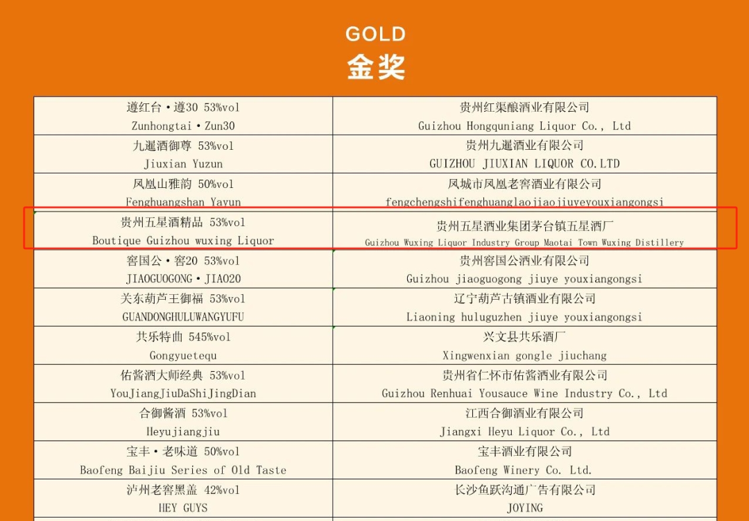金榜題名!五星醬酒斬獲國(guó)際烈酒大獎(jiǎng)賽重量級(jí)金獎(jiǎng)!!